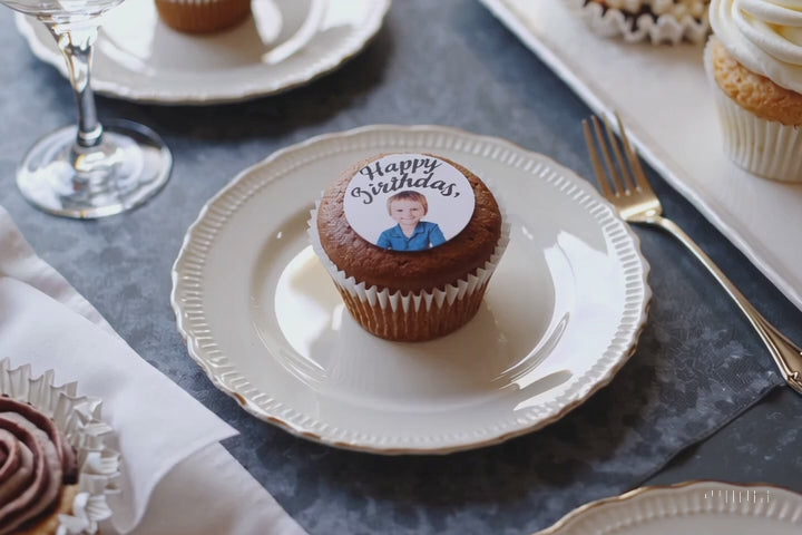 Mit unseren personalisierten Muffinauflegern wird jeder Anlass zu etwas ganz Besonderem. Egal ob Geburtstag, Einschulung, Taufe oder Jubiläum – dein eigenes Foto macht aus jedem Cupcake ein liebevolles Highlight.